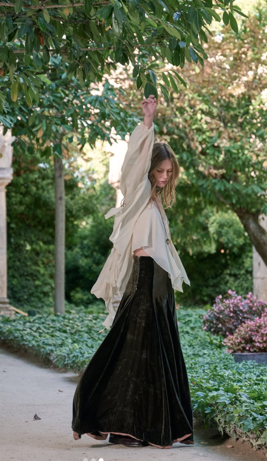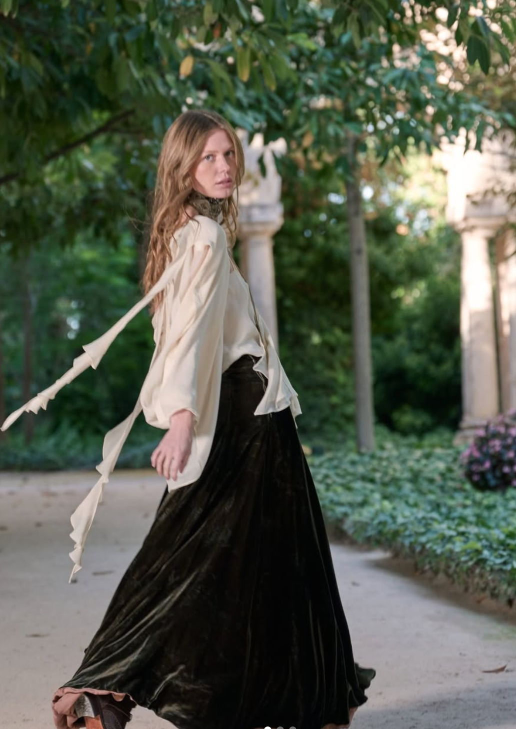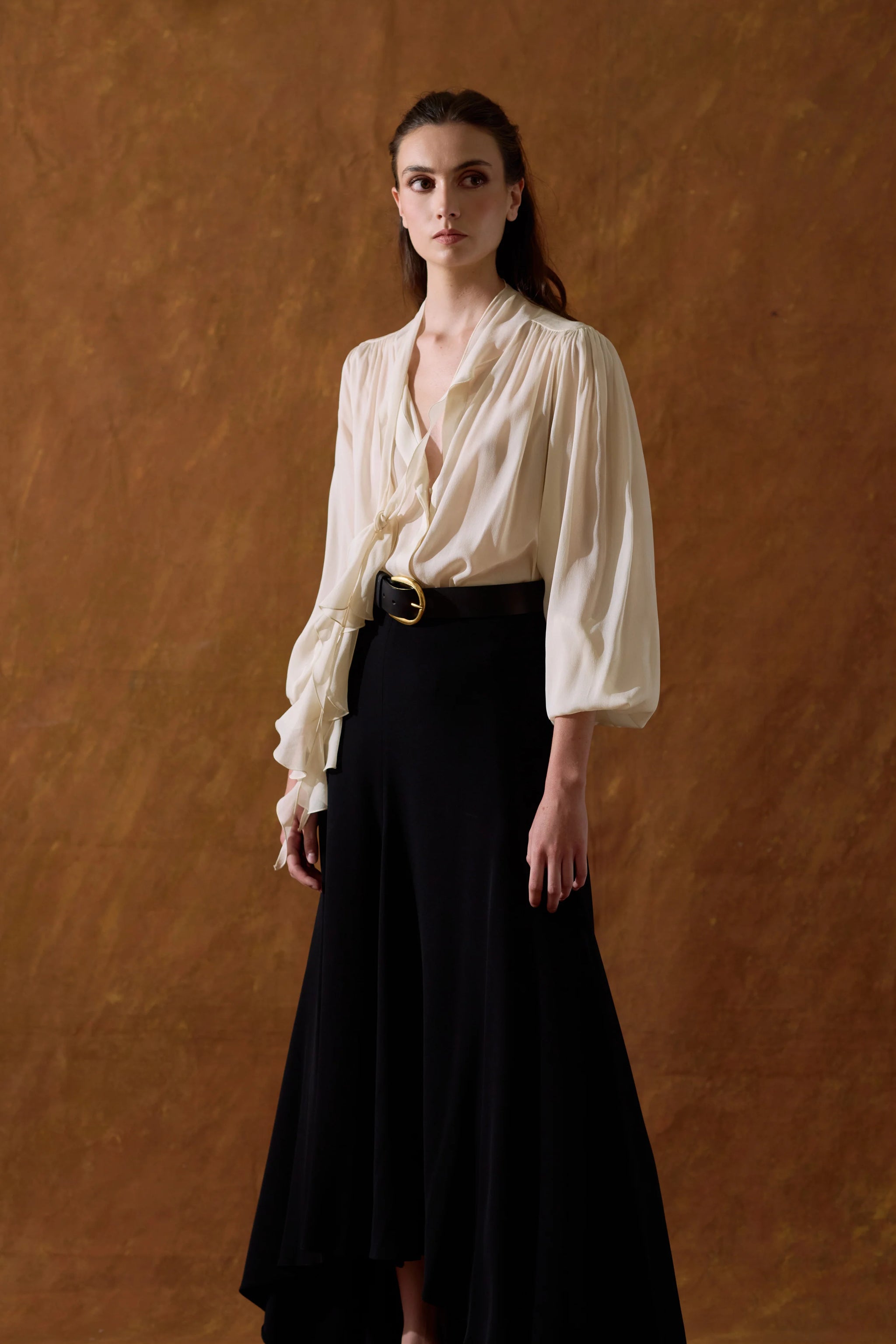 T.ba Pienza Blouse Crespon Crepe Pienza Blouse A blouse grounded in earthy tones and gentle movement. With flowing sleeves and cascading ruffles, it drapes effortlessly, offering...