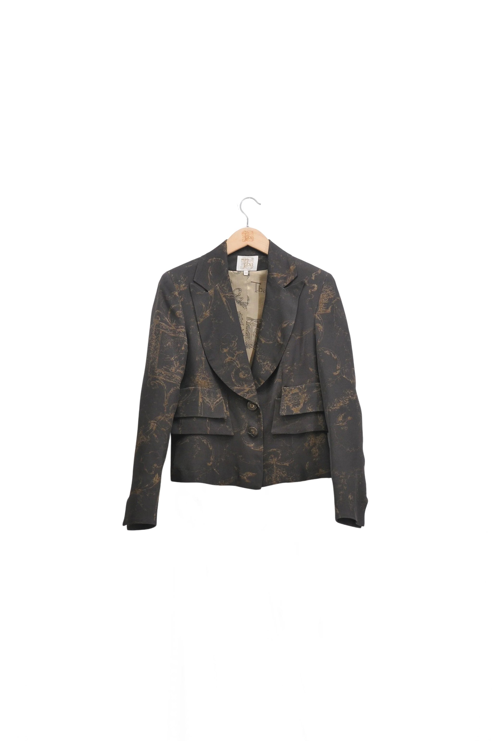 The Jazz Jacket is tailored in a printed Sharkskin fabric with a structured yet comfortable fit. It features a rounded lapel, a two-button front closure,...