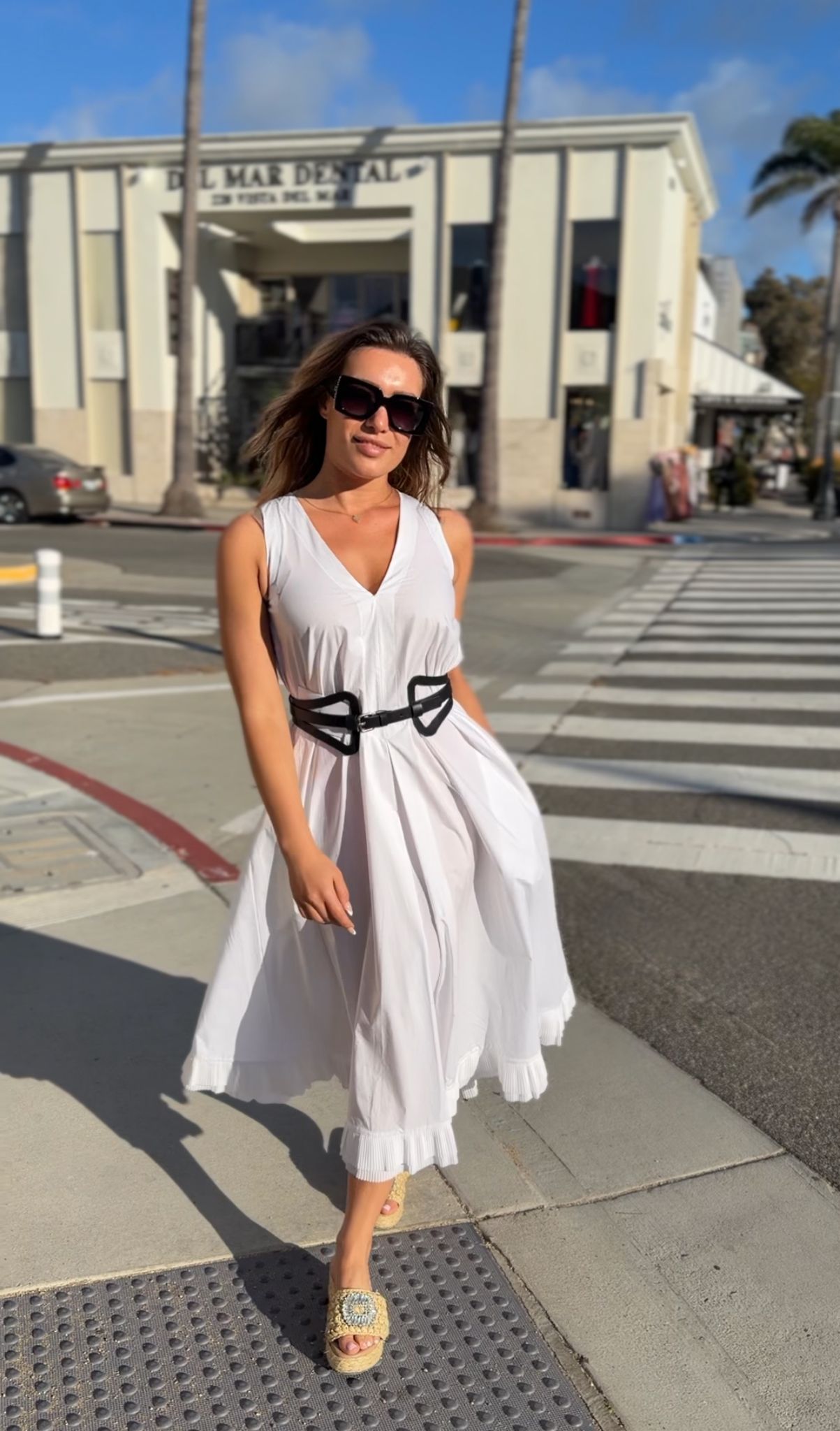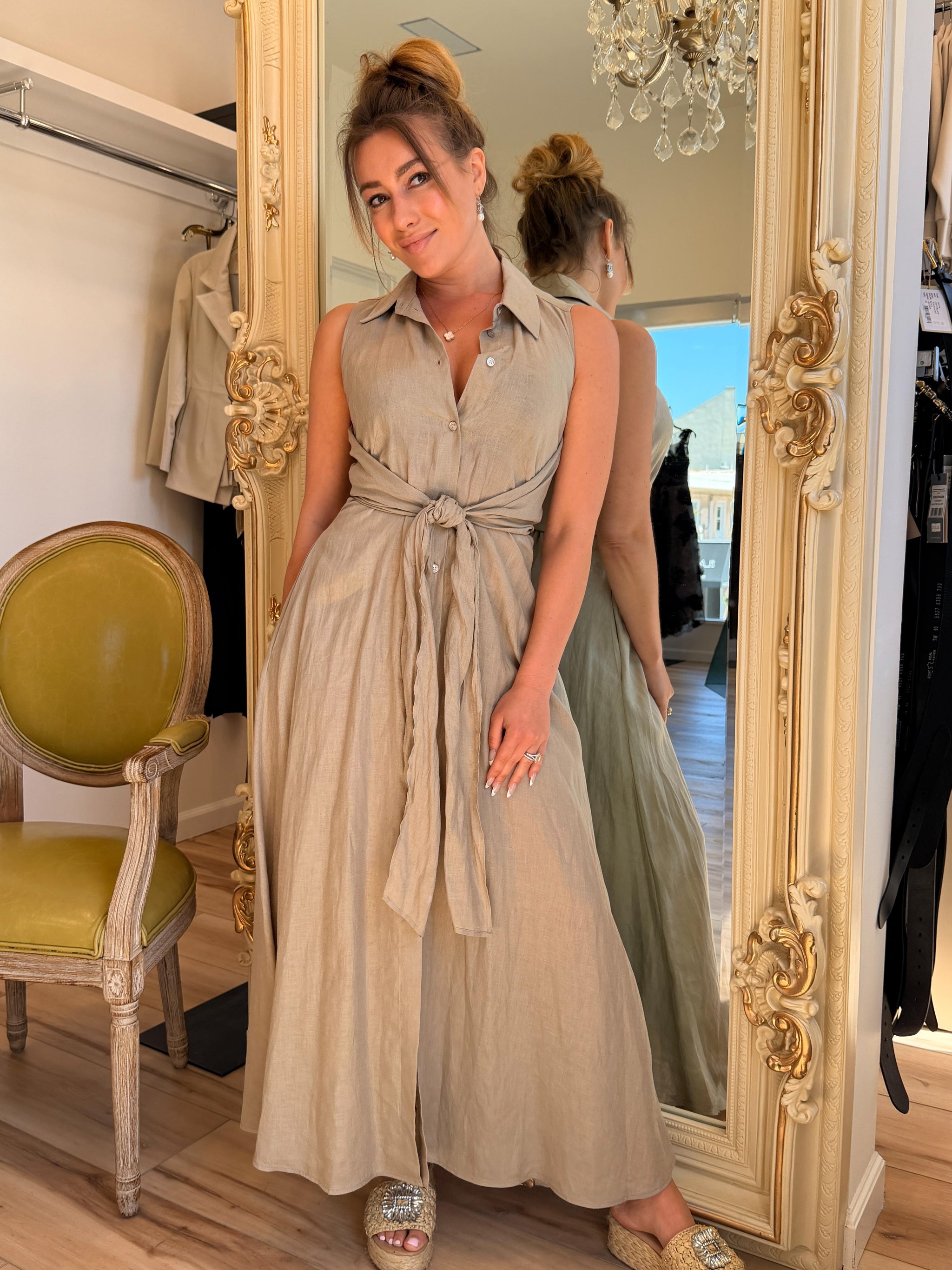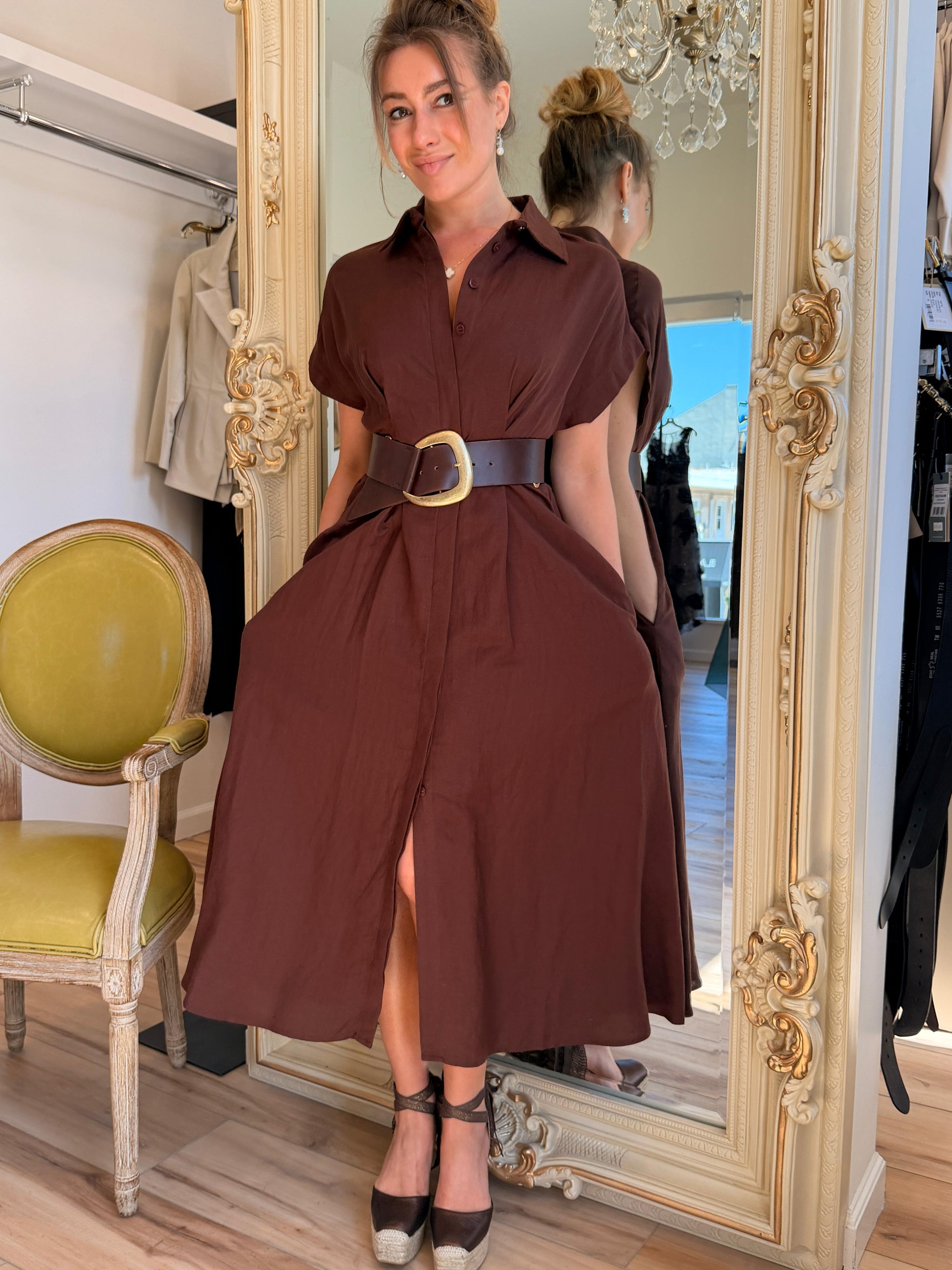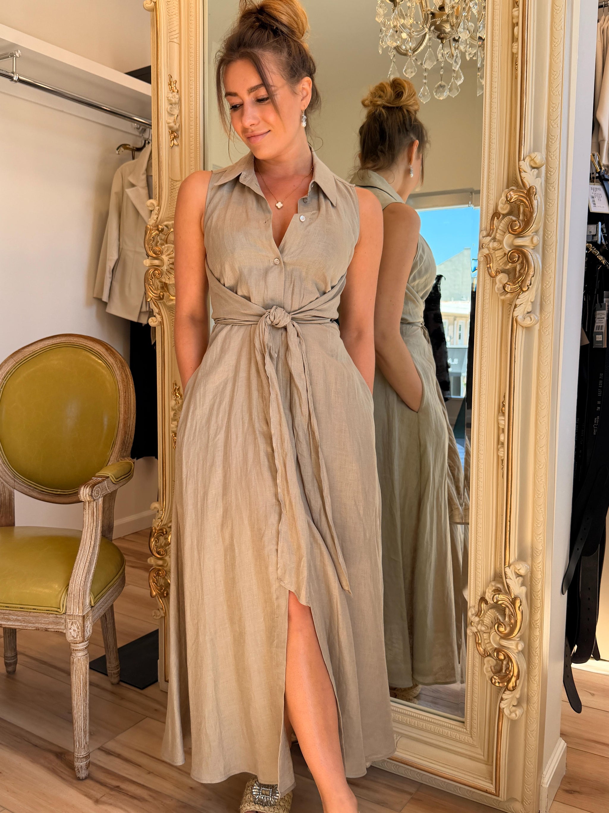 Sculpted yet fluid, this stretch taffeta dress features a wired double lapel collar, waist sash, and pleated skirt. The Rhinestones zipper pull adds a refined...