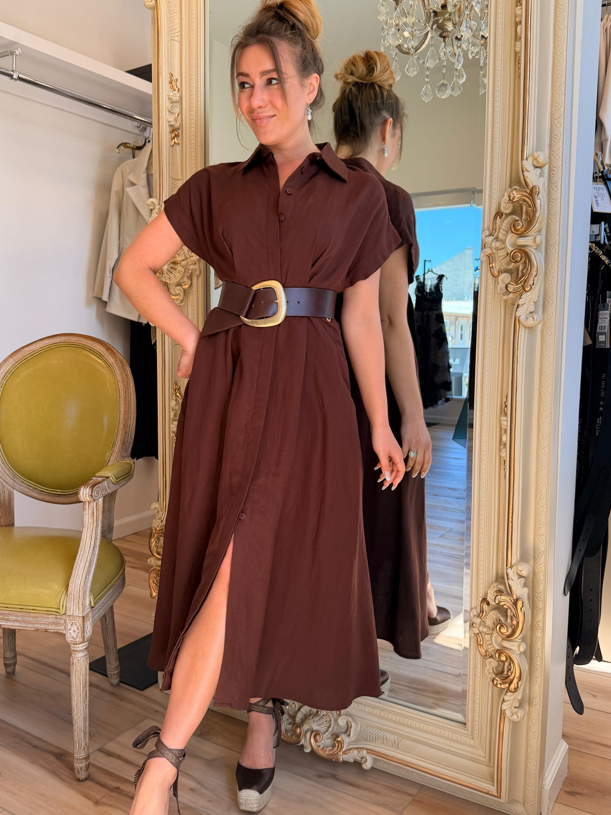 Joseph Ribkoff Signature | Stretch Taffeta Fit And Flare Dress With Lapel Collar
