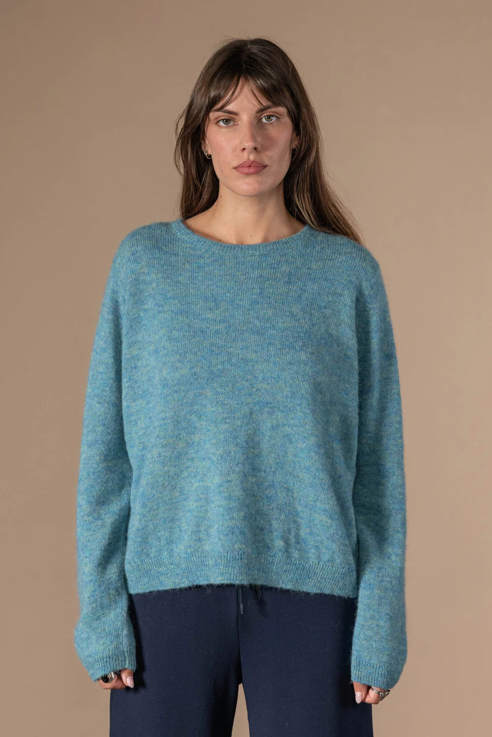 Round neck sweater in very soft wool. Loose fit. Length from the shoulder for a size S: 55 cm. Composition: Wool 60% Alpaca 35% Recycled...