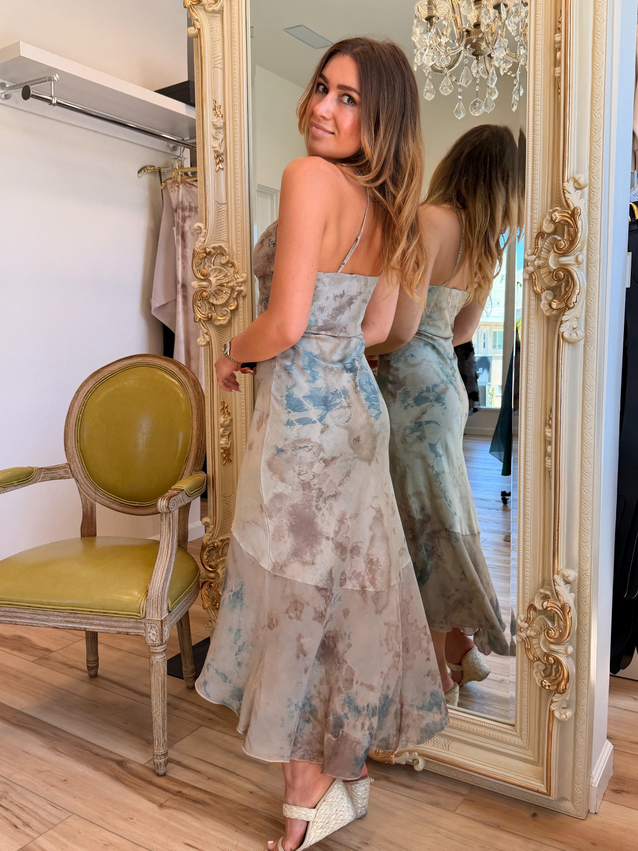 Art you can wear. The Michelle Jonas Paneled Slip Dress in Tokyo Tea is crafted from 95% washed stretch silk with 5% spandex — impossibly...