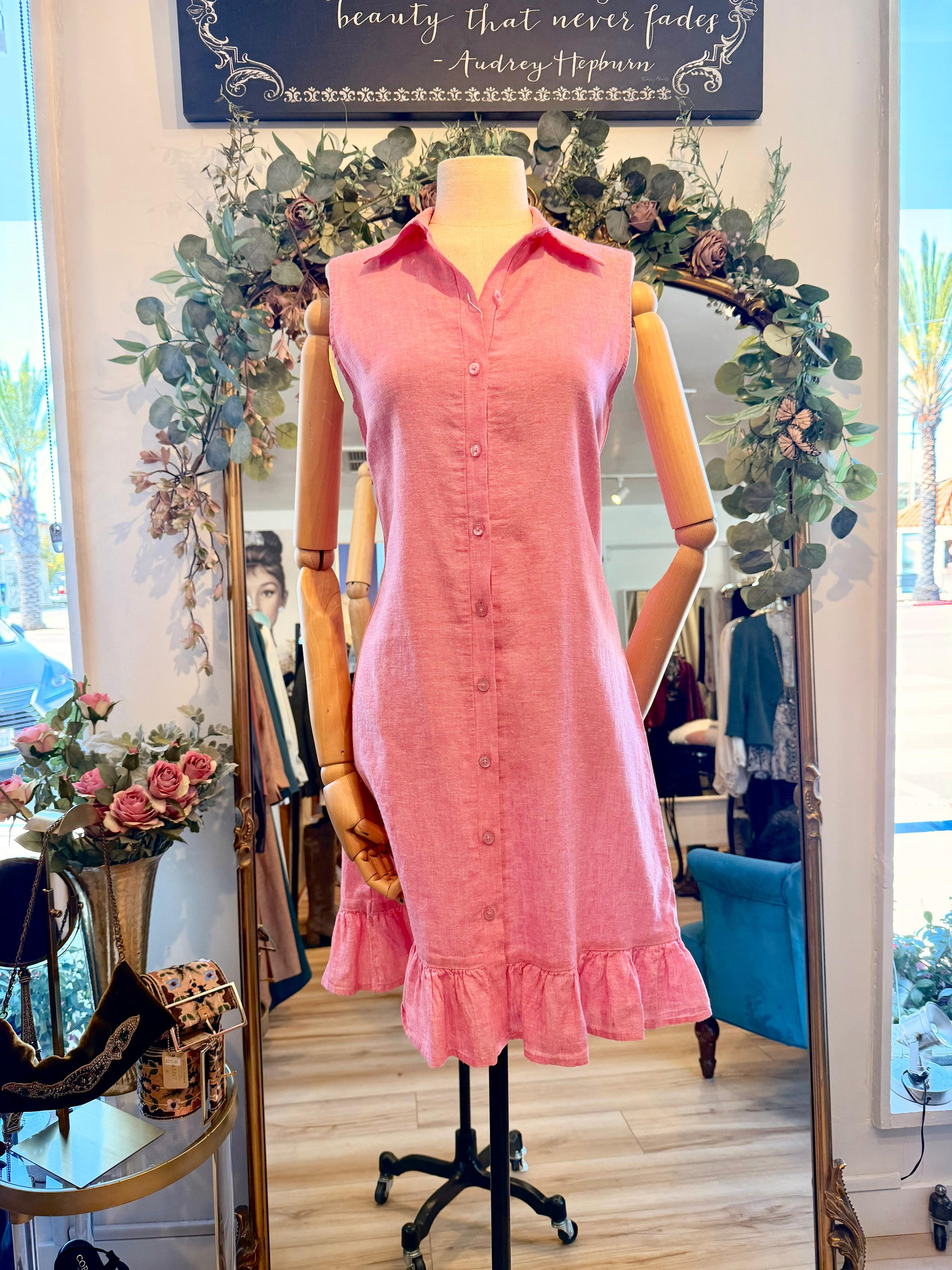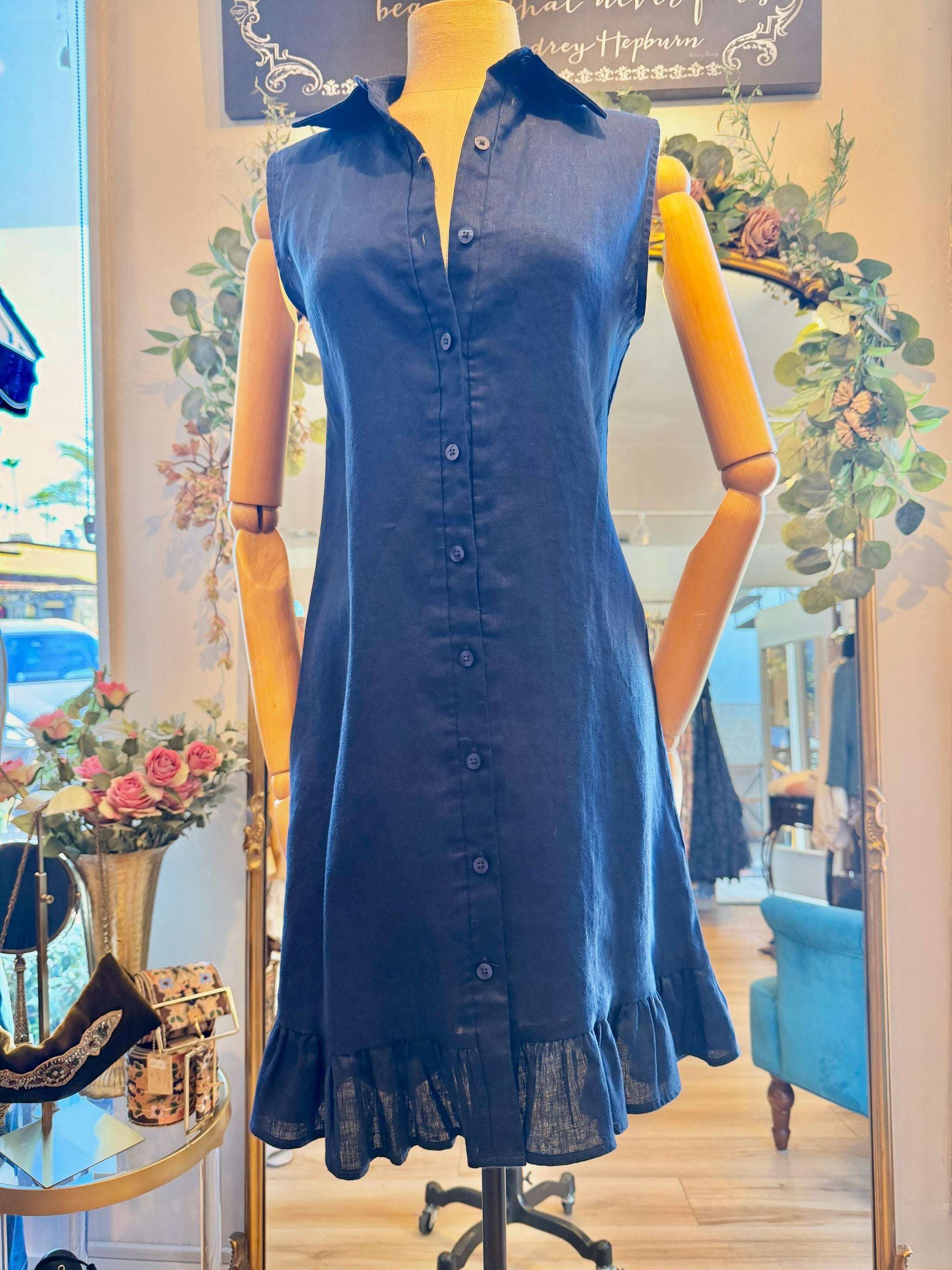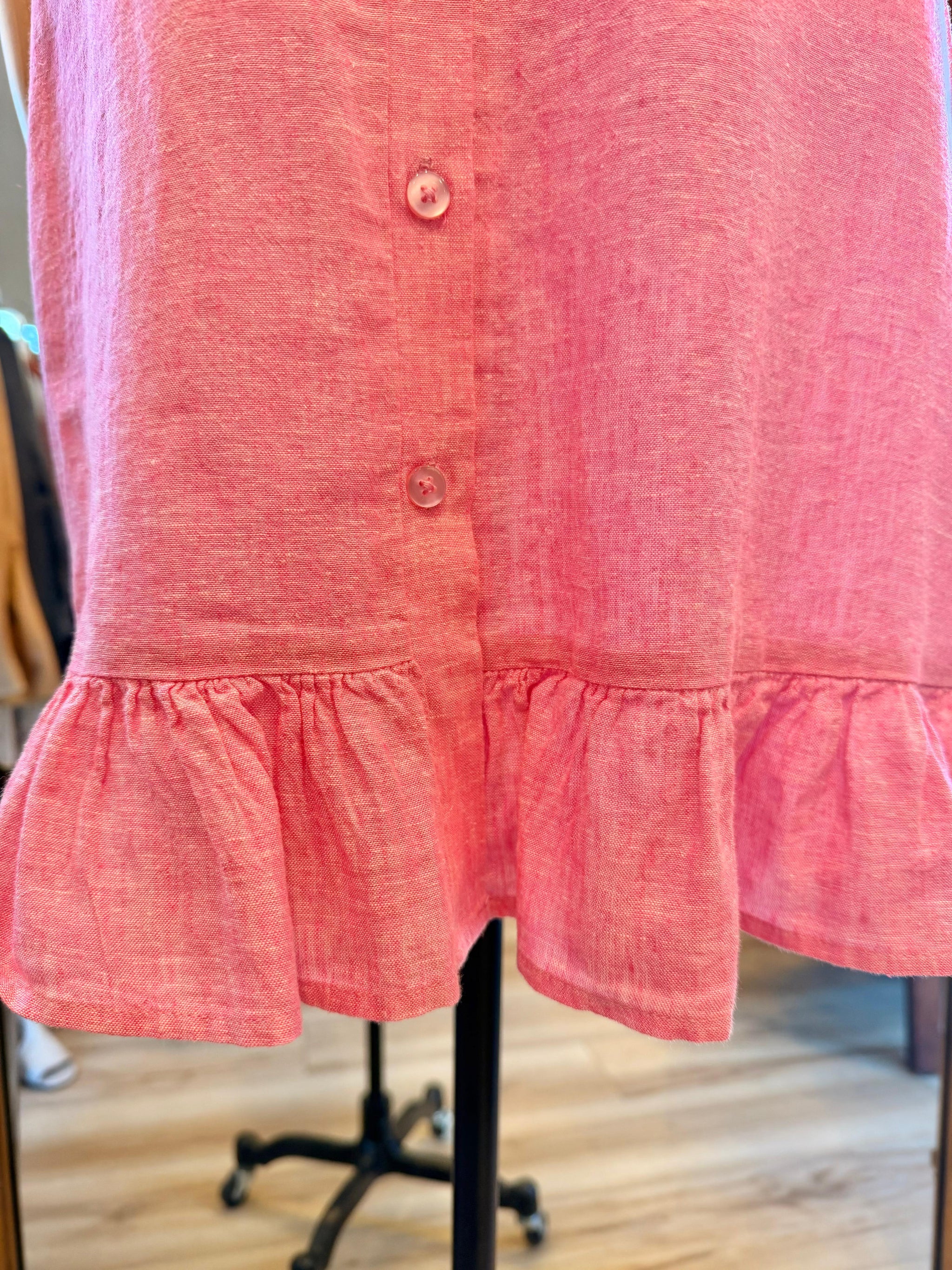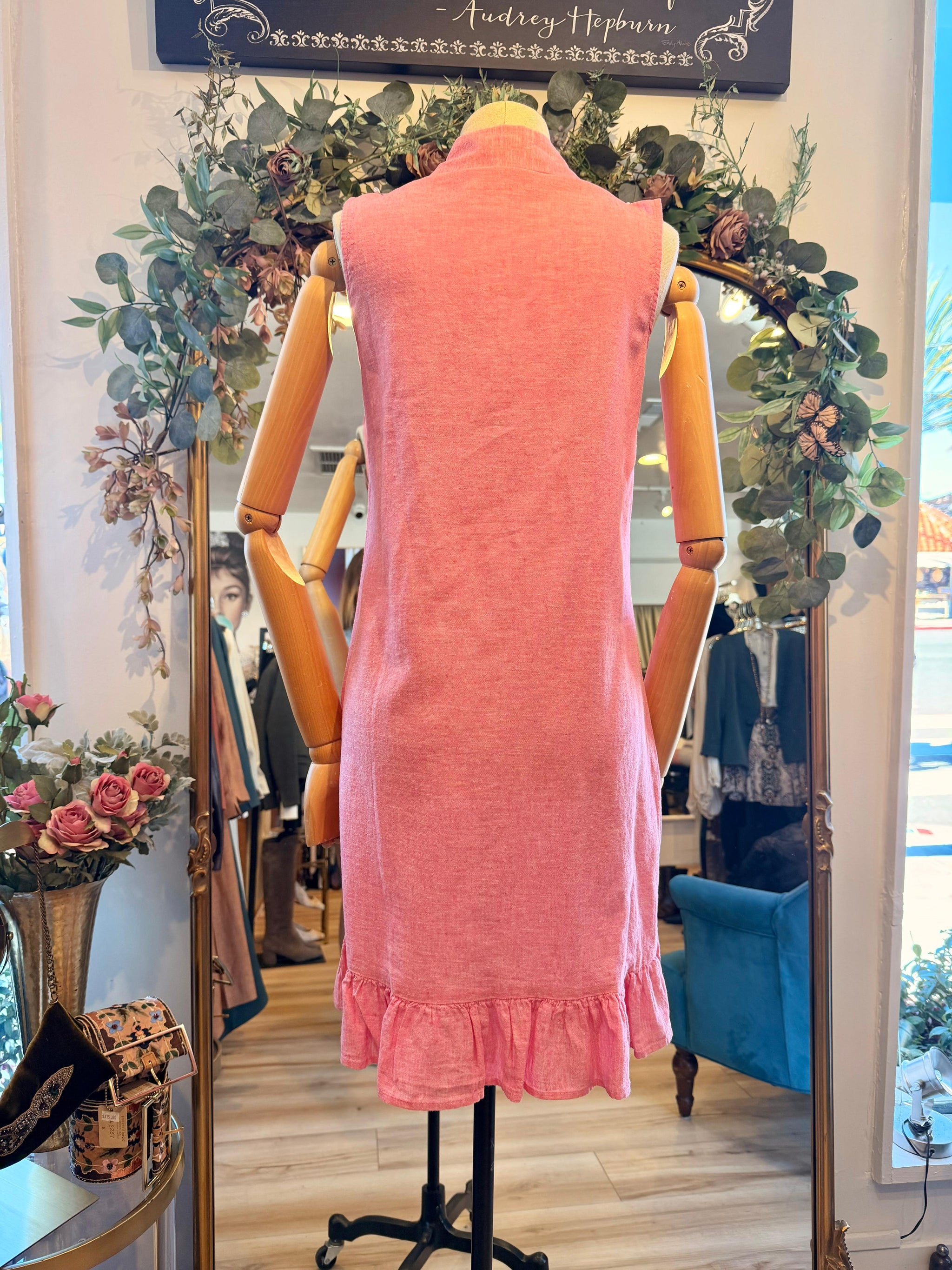 Silk Linen Organza Fully lined Pockets at hips Zipper back with smocked panel for easy fit Full length (43.5” front top of waist to the hem) Content...