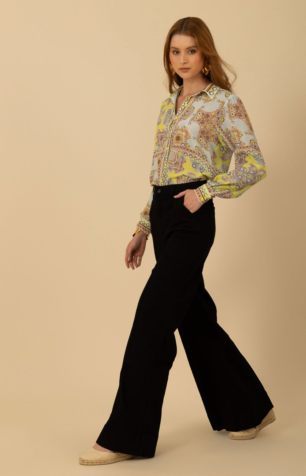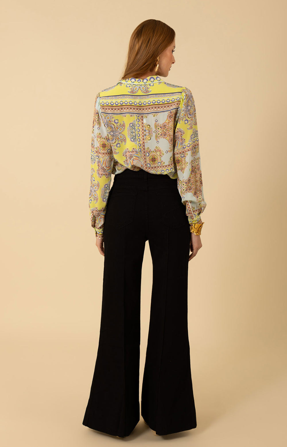 Hale Bob Elyse Velvet Top Velvet Burnout Set in jersey lining at body Pleating at top neck & sleeve Buttons at front keyhole (60% silk/40%...