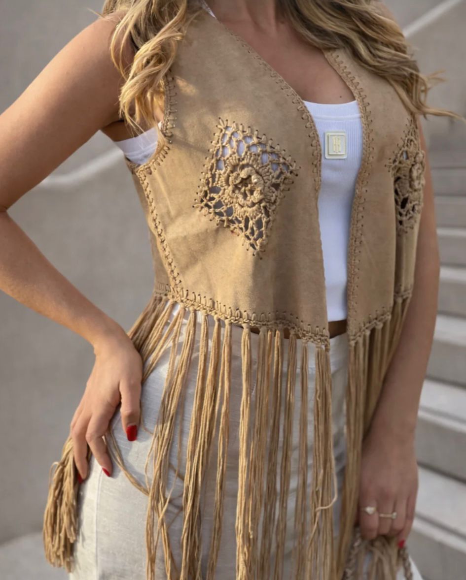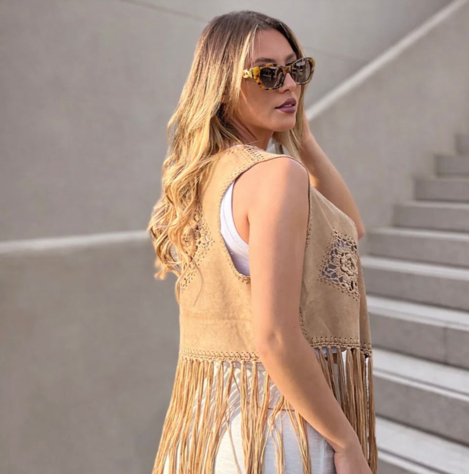 PHO Firenze Gilet Eco Suede With Fringes Vest Fringes Suede Material Made In France