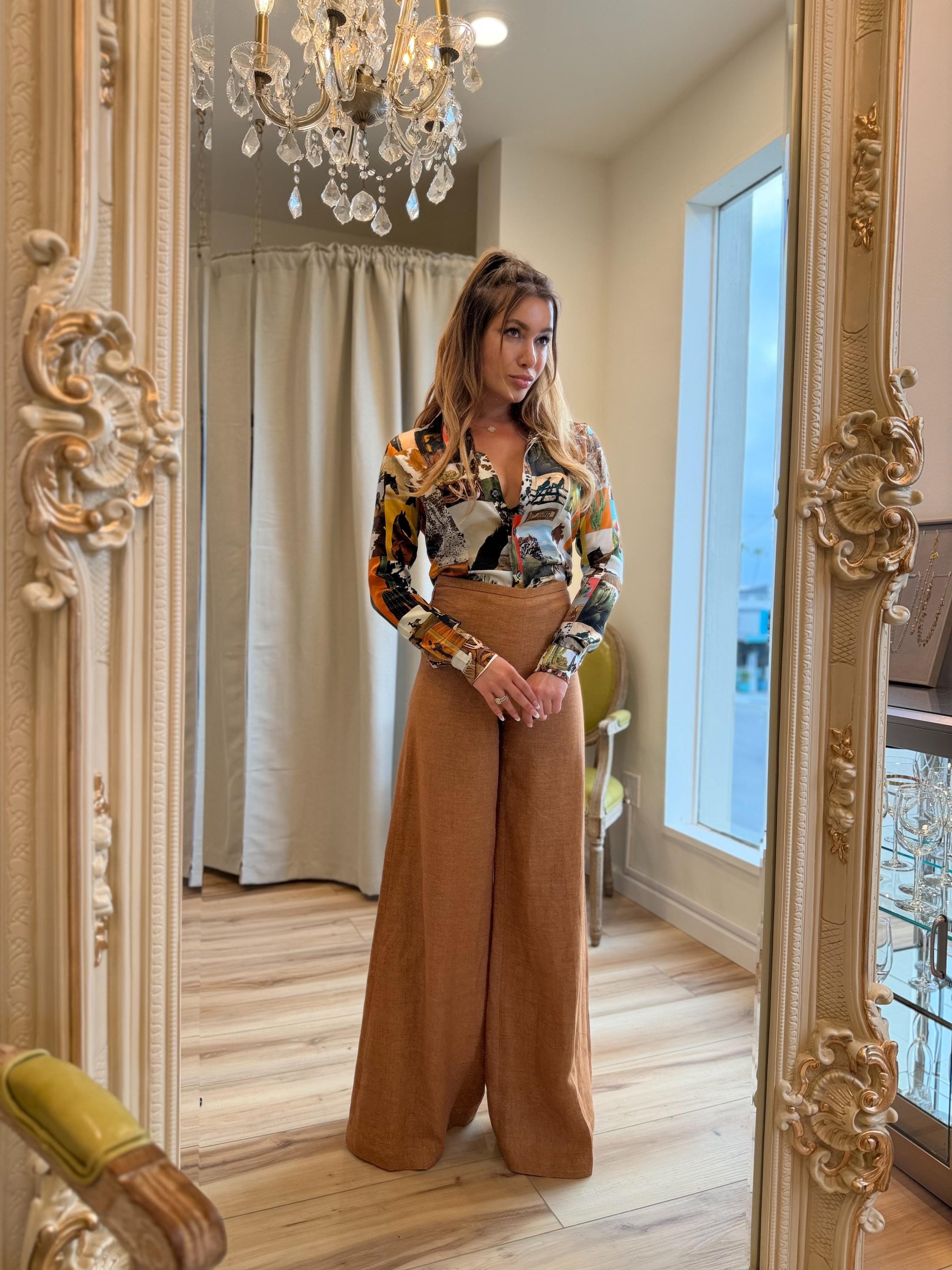 The Pienza Blouse is crafted from lightweight ramie with a soft, natural texture. Designed with a tie-neck and cascading ruffle front, it combines relaxed volume with feminine detail. The subtle embroidery enhances the fabric’s tone and depth, while the gathered cuffs complete its refined yet effortless look.