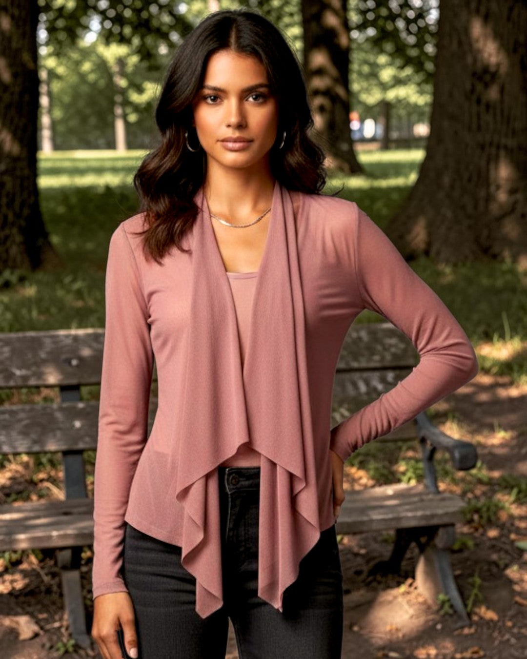 PHO Firenze Woven Long Sleeve Blouse Long Sleeve Blouse Front Ruffles In The Front Made In Italy