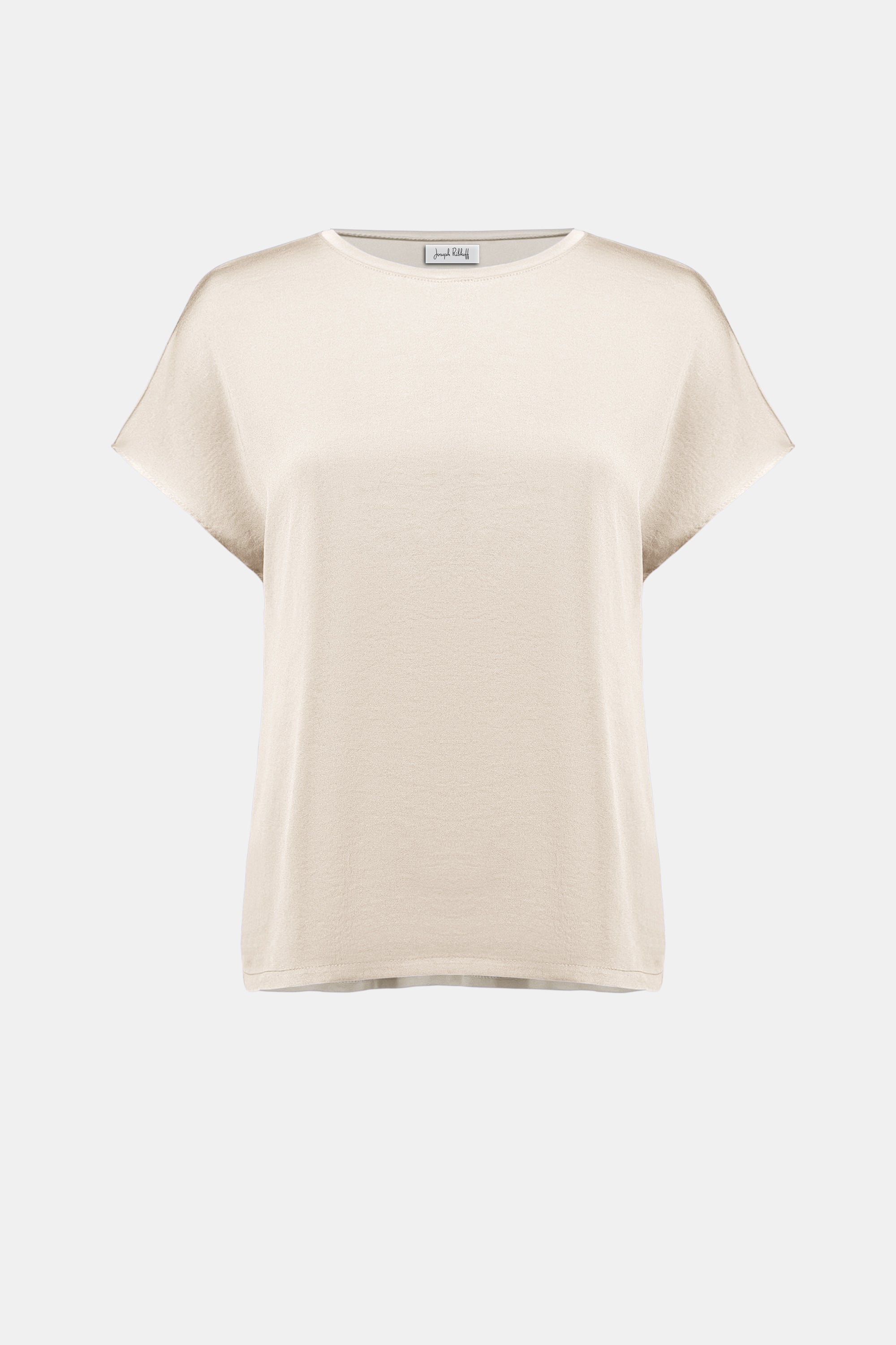 This straight top combines hammered recycled satin with smooth silky knit for a refined textural contrast. Designed with a scoop neckline and short dolman sleeves,...