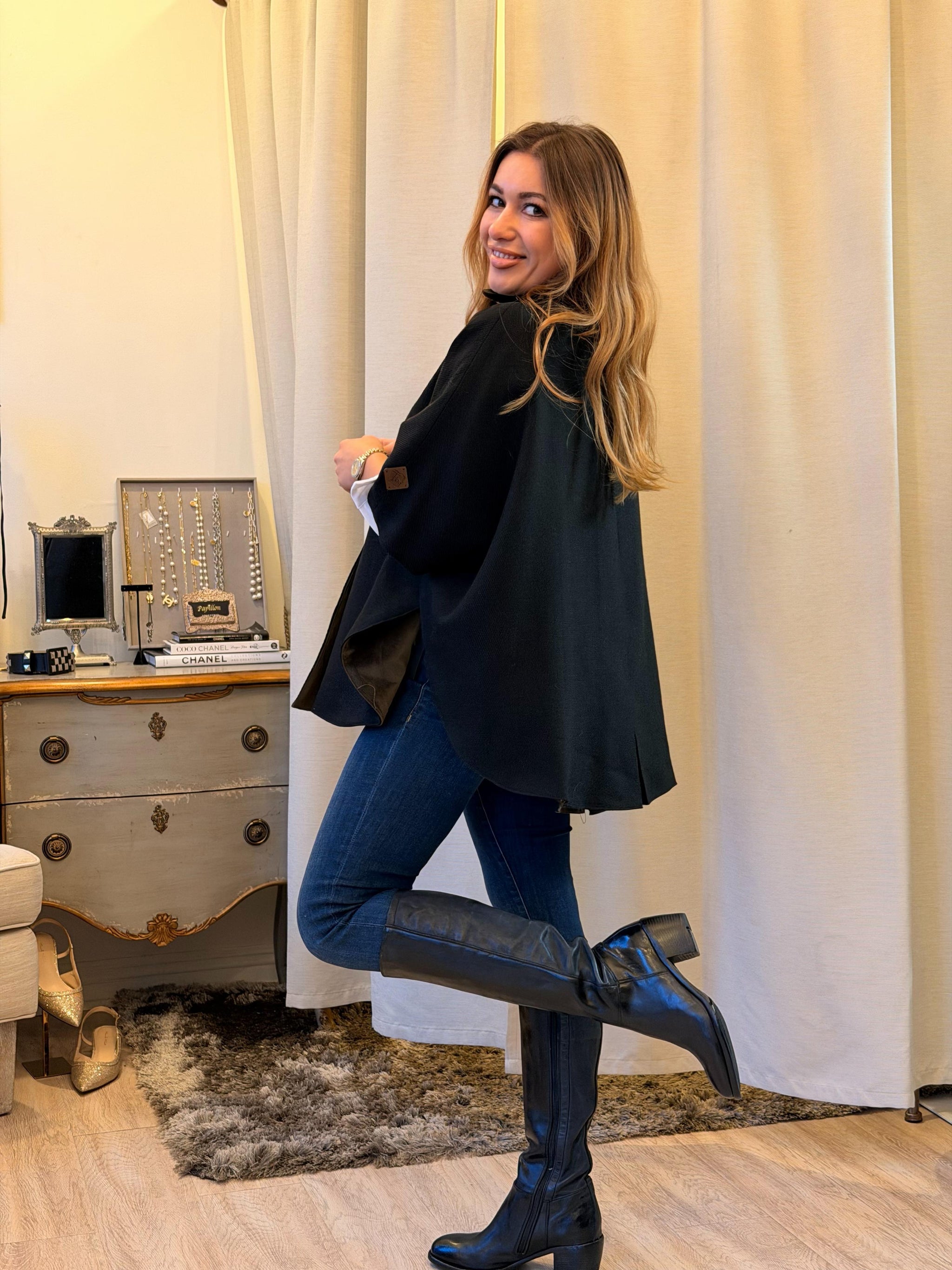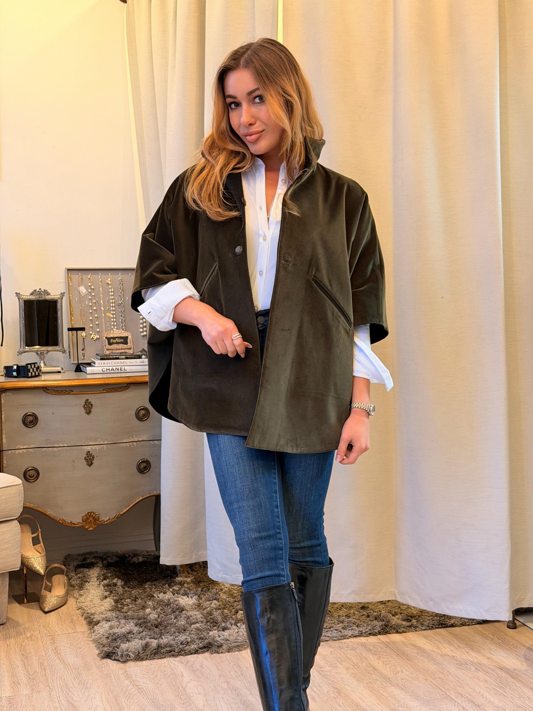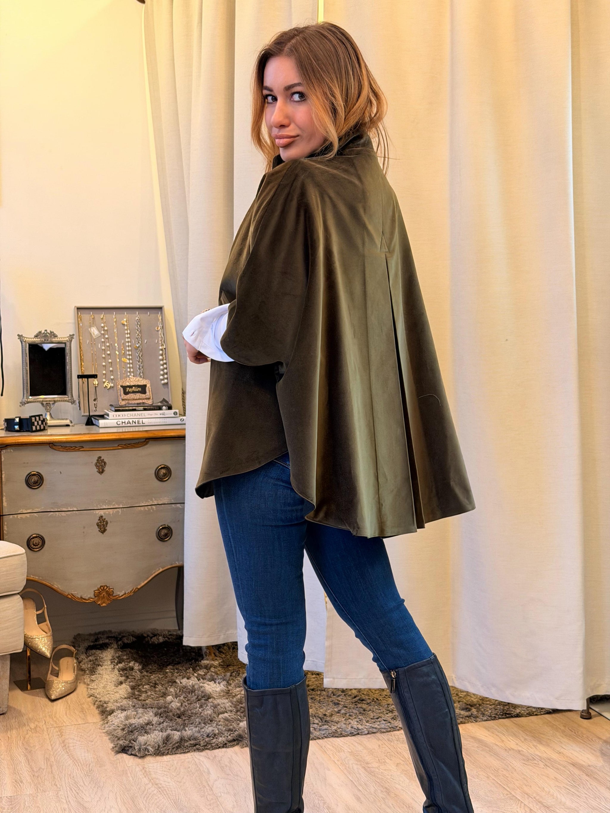 T.ba Kasaka Cape Jerez The kasaka is a blend between a cape and kimono, with a fluid design and bat sleeve made of reverse Slip it on, and you...