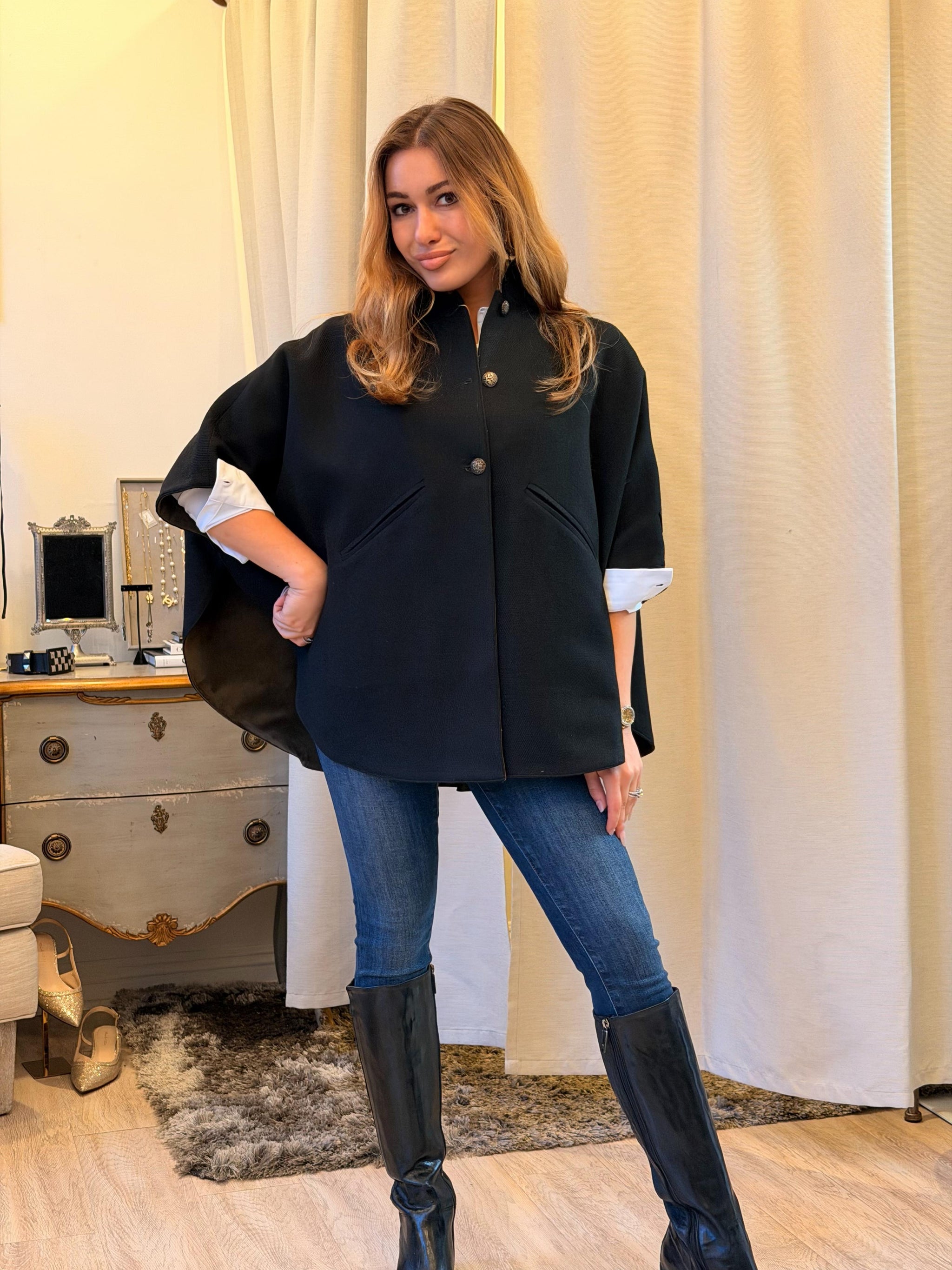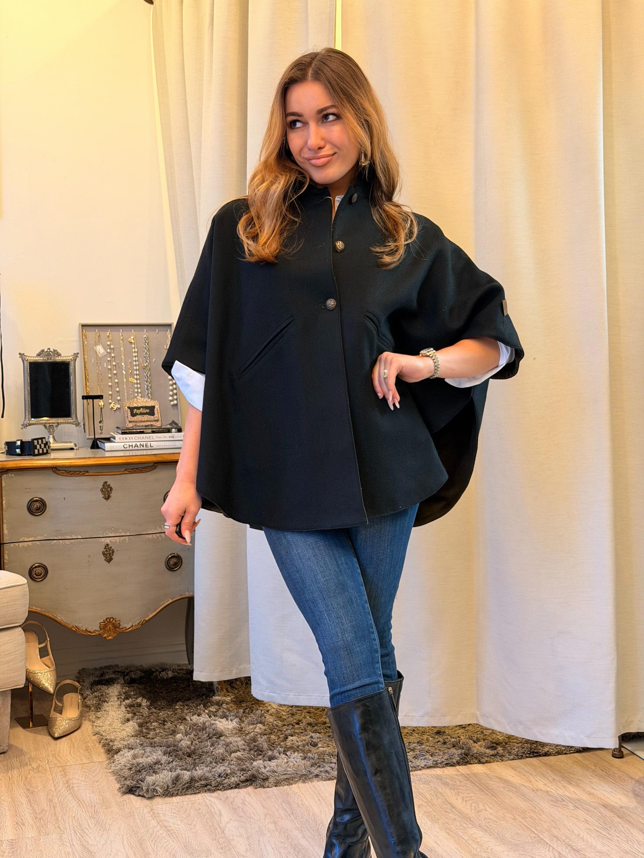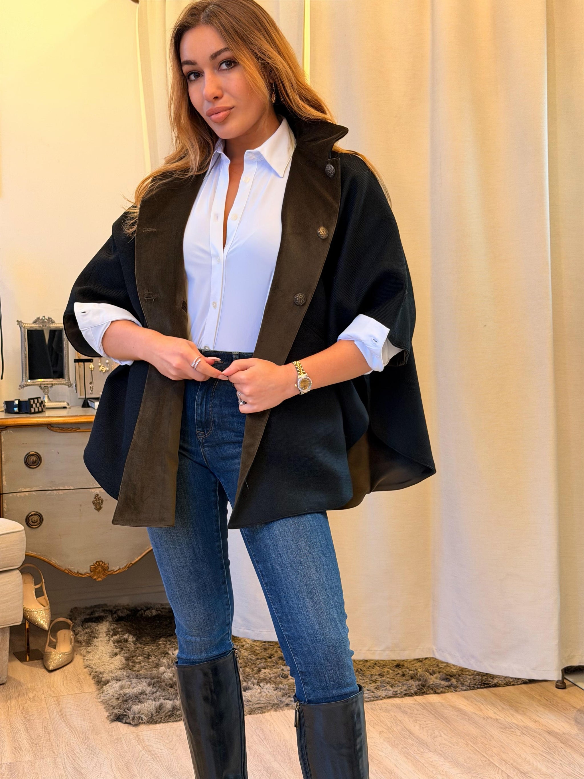 T.ba Kasaka Cape Jerez The kasaka is a blend between a cape and kimono, with a fluid design and bat sleeve made of reverse Slip it on, and you...