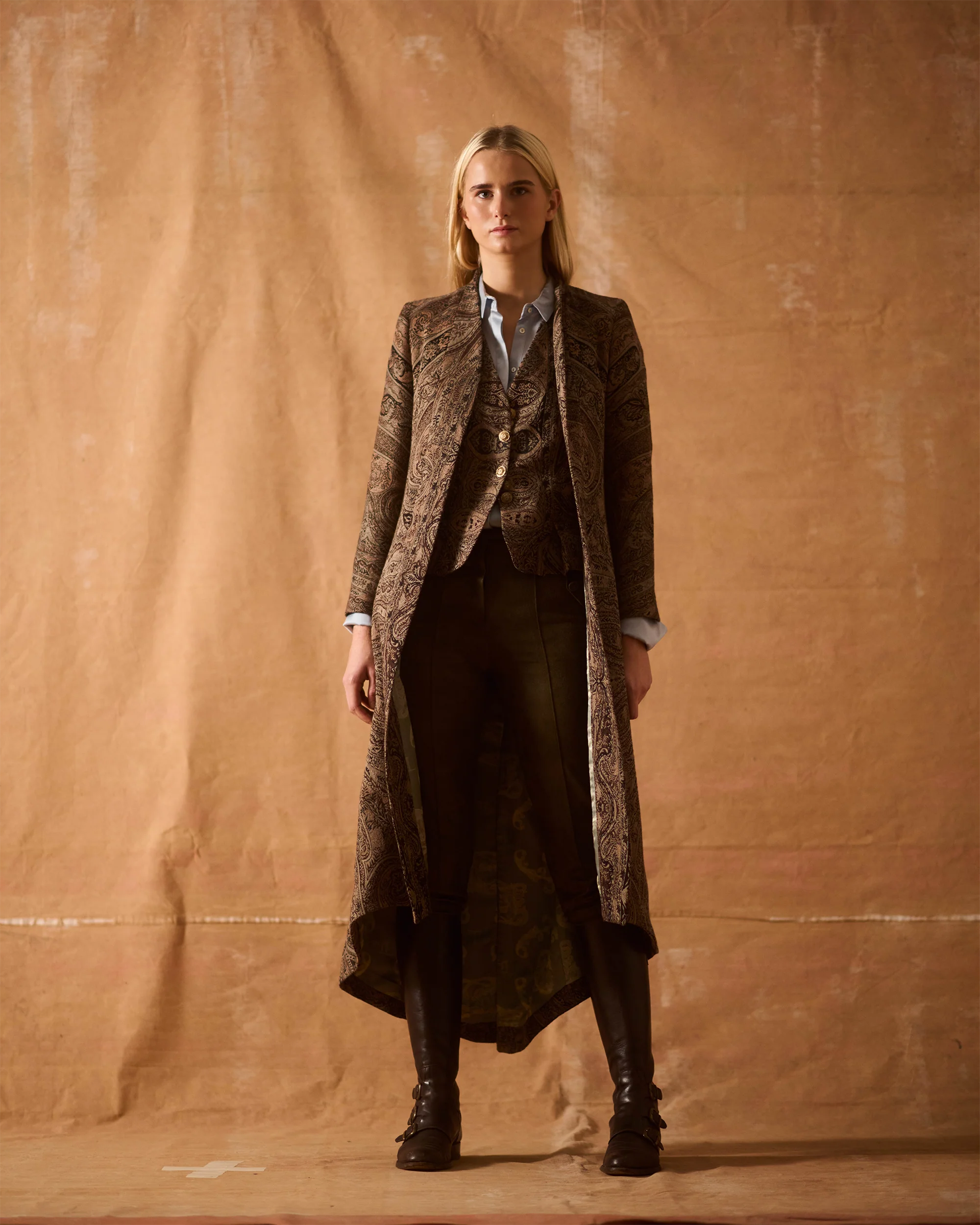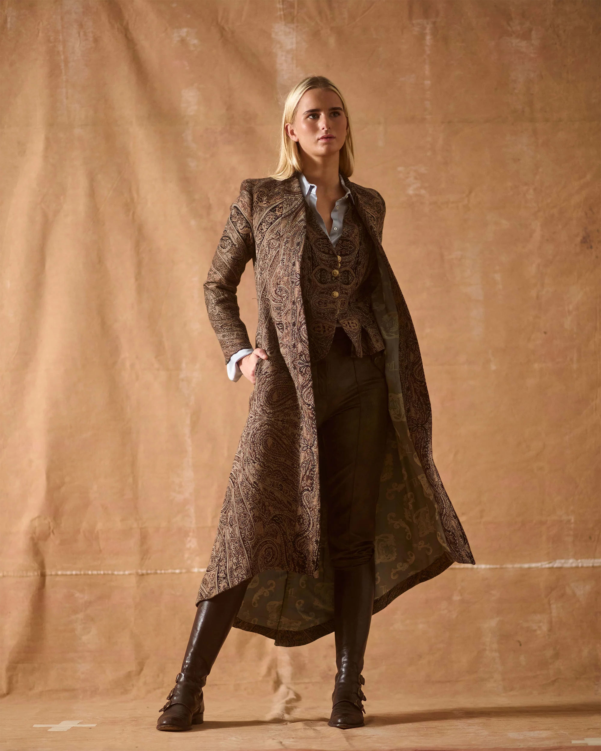 T.ba Ginebra Coat Tzar Jacquard The Ginebra Coat is made from a rich jacquard fabric featuring an intricate paisley-inspired pattern in deep, contrasting tones. It...